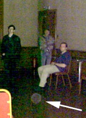 The evenings activities began at about 9 PM. Shortly prior to this however as the groups were informally chatting in a downstairs room, a loud bang was heard around the window area (on the inside apparently) of that room. While the grounds were still occupied at that time, an inspection showed that no one was nearby on the outside. This event set the tone nicely for the rest of the evening.